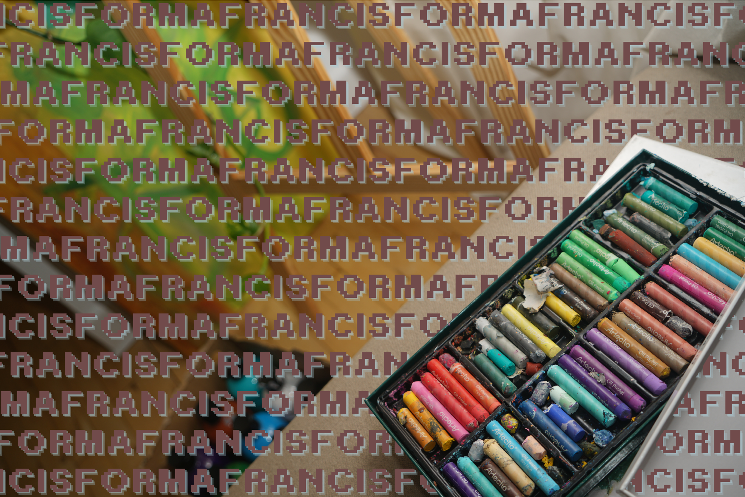 My work is mostly created from a mixture acrylic paint and oil pastel. The surface is either paper or canvas, however I am experimenting with other surfaces such as wood and tarpaulin. Only one piece is created digitally and is the poster “Per Favore”.